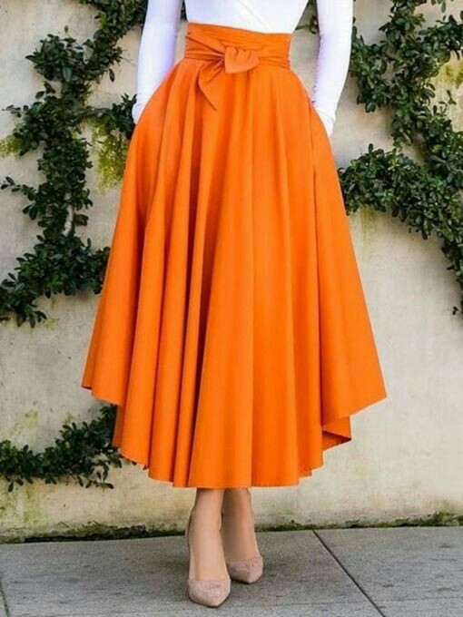 Asymmetric skirt have varying hem lines. They are also known as High -low skirts, waterfall, or mullet skirts, these are skirts that are higher in the front or side, than in the back.